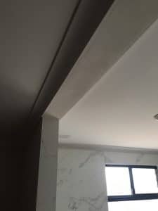 The 75mm cove cornice was installed, grouted, flushed and sanded ready for paint.